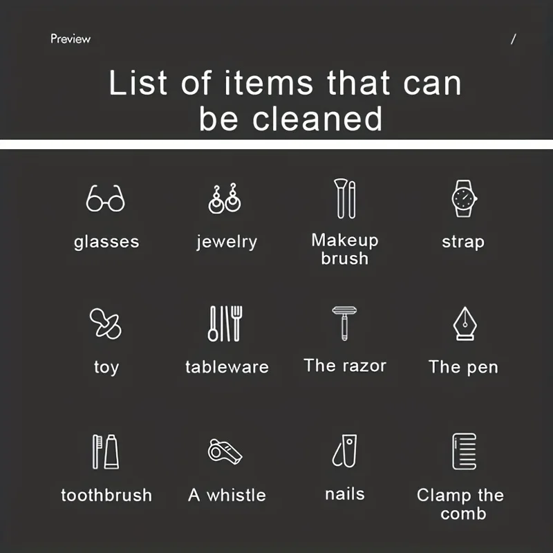 1. Clean quickly and easy to operate. Add tap water, turn on the switch, and you can finish cleaning items using waves in a few minutes.